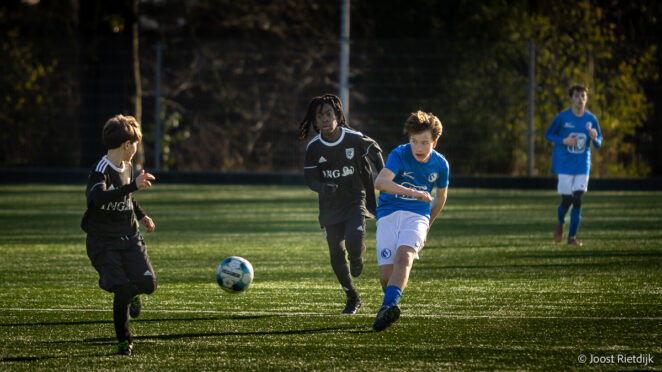 De komende weken worden rommeliger. Door de aankomende voorjaarsvakantie, die door het land verspreid zijn, zijn er ook speelvrije weekenden en wordt er misschien wat geschoven met wedstrijden. Het competitieduel tegen SDZ valt precies in de voorjaarsvakantie, wat voor afwezige spelers zorgt. “Dat is wel jammer,” zegt Florian. “Dan moet het team worden aangevuld met jongens uit andere teams.” Toch is er genoeg om naar uit te kijken. Er staat zaterdagmiddag een oefenwedstrijd tegen een Engelse ploeg uit Liverpool op het programma en daarnaast een gezamenlijke lunch plus een clubactiviteit rond sportief gedrag, met een heuse quiz en gezamenlijke teamuitje bij Ajax – Fortuna Sittard in de Arena. “We moeten met die quiz luisteren en actief meedoen,” zegt Florian. “Dan krijgen we misschien een certificaat als we deze goed afronden.” De winst op Zeeburgia geeft vertrouwen, zeker omdat het spel volgens Florian steeds beter wordt. Meer kansen, meer controle, meer overtuiging. En zaterdag met z’n allen op de fiets naar de Arena voor de competitiewedstrijd tegen Ajax.