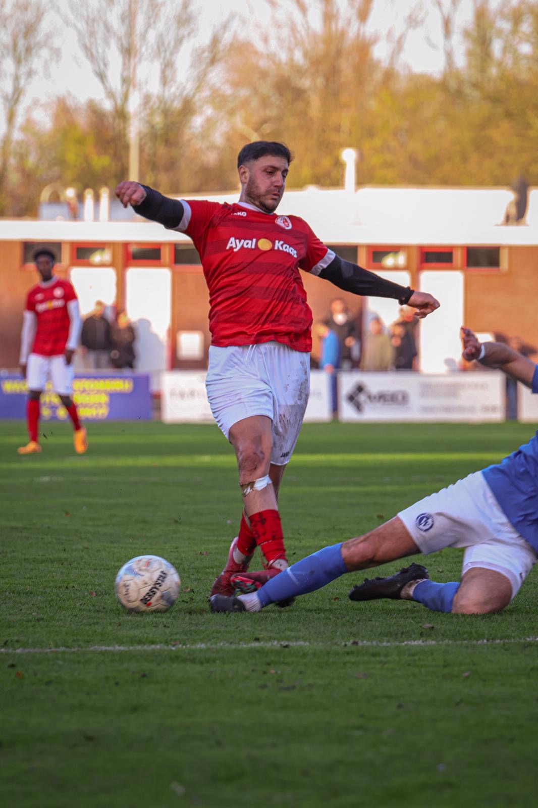 En ja, ik meldde al dat ook de scheids deelde in de malaise. Met als hoogtepunt het fluiten voor een vermeende overtreding op rand zestien van onze rots in de branding Midas Ploem Kempkes. Hij is zo overtuigd dat ie zelfs geel trekt. Kost toch een kleine € 20. En dat geheel onterecht. Dit terwijl hij prima zicht heeft op de situatie. Midas speelt de bal. De speler van Rood Wit Zaanstad is te laat. Zet z’n voet gevaarlijk op het scheenbeen van Midas (zie foto boven verslag) en doet alsof hij net door een jager is neergeschoten met een schot hagel. Als een stervende zwaan gaat ie naar het gras. Iets wat hij de hele wedstrijd al deed. Tsja, dan vraag je toch als scheids om een slechte beoordeling. Wellicht is een bezoek aan de Specsavers toch te overwegen? Ooit was hun slogan namelijk “Specsavers laat scheidsrechter beter zien”.
