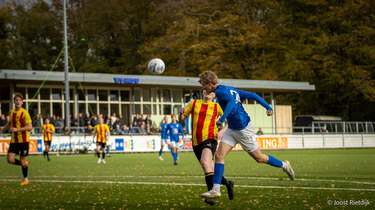 Aan de overkant mochten we op twintig meter van het doel een vrije schop nemen na een overtreding op Tim Correia. Mick van Moerkerk knalde in de muur waarna Tim op de achterlijn in duel raakte naar aanleiding waarvan de scheidsrechter hem een gele kaart toediende die nog gevolgen zou hebben (84’). Eindelijk gevaar aan de overzijde maar Bjorn van Breenen zocht na een corner ons doel te hoog. Laatste wissel bij WV: Rida Najib voor Mats Eising (86’).